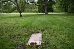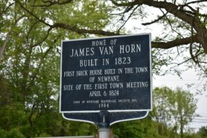 There is the matter of the moved graves. The family graves were moved from the Van Horn family cemetery to Glenwood Cemetery in Lockport. The misty history seems to indicate that all the graves were moved except Malinda Van Horn’s, who died in 1837; she was an early burial on the property. In Glenwood Cemetery, Lockport, New York, you will find a large granite rock inscribed with” Van Horn” and 10 smaller gravestones carved with Van Horn family members’ names, from the Honorable Burt Van Horn in 1856 to Helen in 1936. In another section of Glenwood, there is a small mapped area of Van Horn graves, listing James Van Horn and his wife, Cecelia, and three small stones labeled “Baby.” Everyone except Malinda seems to have a headstone at Glenwood.